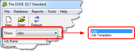 Default setting is to display the jobs database list. By clicking the drop down arrow, the screen will then display the job template database list. This field is used to select job from either you jobs database or your job Templates (Master Jobs) database.