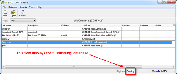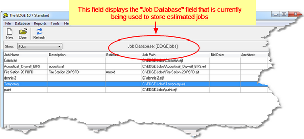 Displays the name of the Job Database that you are currently using. You can have a single or multiple Job Database paths. For previous users of the EDGE this “database” is exactly the same as the “EDGE Jobs” folder you used to have on the root of C:\. As a matter of fact is you go to C:\ you will still see a folder called EDGE Jobs, if you are storing your jobs on a server then the path to the jobs folder will reflect that information. The same holds true if you are working from an EDGE network.