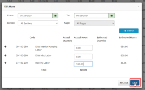 To demonstrate this situation, let’s say we’re on our Labor Screen and we have inputted 100 hours through Bulk Upload, or even by adding hours to my roofing labor code.