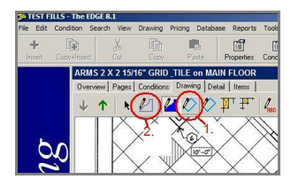 Once you have drawn your area you then need to deduct the regular wall molding before you draw in the flex molding. First you will need to click on the regular wall molding tool bar button [1], then click on the deduct button [2]. Now you can deduct out the regular wall molding.