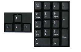 In the above picture you see the arrow keys circled and the numeric keypad arrows circled individually. Also note the Control (Ctrl) key has been circled as well