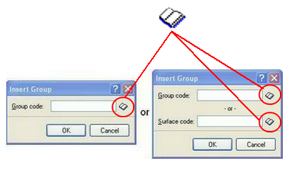 Depending on your trade and the options you purchased you will see only one of the two Insert Group dialogs seen above. Both do exactly the same thing, the only difference is the one on the right has access to a second database called the Surfaces database. If you do not see the Surface code field on your Insert dialog then you do not need it.