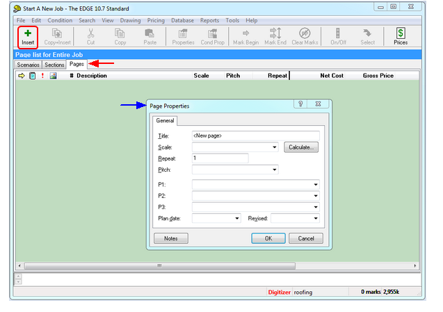While none of the fields of the Page Properties dialog are required in order to create a page once you reach the drawing screen you will not be able to draw until you have created a scale for the estimate.
