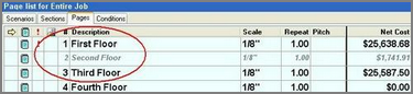 When doing an estimate, you can turn Scenarios, Sections, Pages, Conditions, Items On or Off to get different totals. In other words, when a page is off, it is in the job, but it is not included in the estimated cost. Once you turn it back on, it does count in the estimated cost. On very large jobs you can turn Scenarios, Sections, Pages, Conditions OFF to speed up the recalculating process.