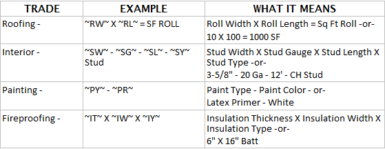 Why do we have and user Tilde Codes? The easiest answer is to give a few examples, prior to Tilde codes The Roofing Group Database had almost 5,000 individual groups by roof system and manufacturer, today the same database doing more needs less than 100 groups to accomplish the same thing. The Drywall Item database required nearly 2,000 lines to have all studs by width, length, gauge and type incrementing in one inch increments, today the same database needs only 1 item to do the same thing. For the user this means speed, accuracy (not grabbing the wrong line out of hundreds accidentally), easier to make changes if needed.