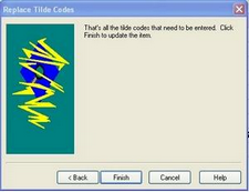 Bear in mind that all items do not have Tilde Codes. If you try to replace tilde codes for an item that does not have Tilde codes you will get a message that states: “The current item doesn’t have any tildes to replace”