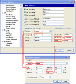 Tax Class – This section allows the estimator to select a tax class for marking up, you are not applying the markup here, you are selecting the tax class from the drop down list. You do this by clicking the down arrow and then picking one of the tax classes from the list above.