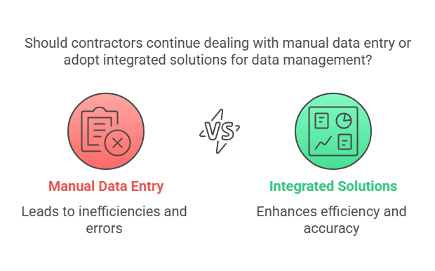 This challenge often leads contractors to transfer data manually, which is time-consuming and prone to errors.